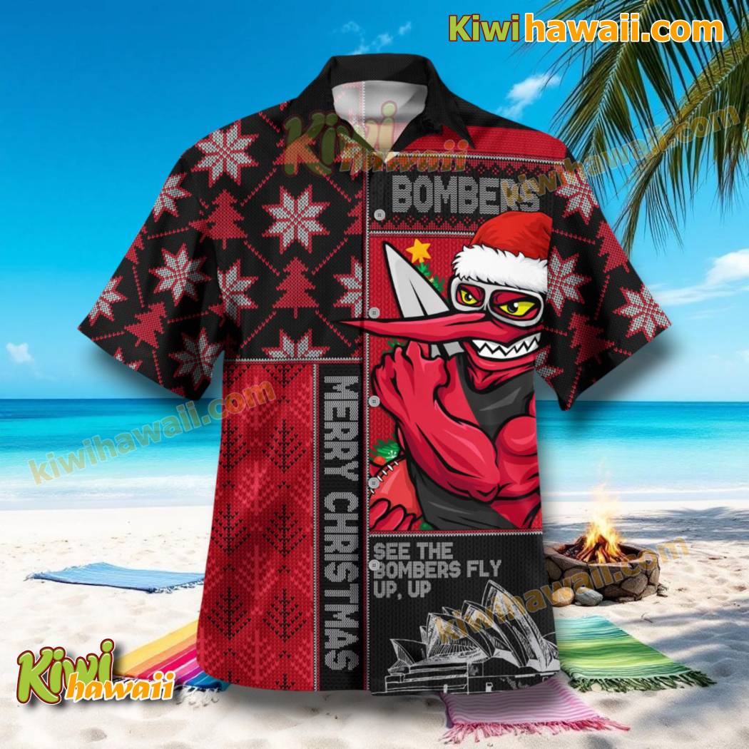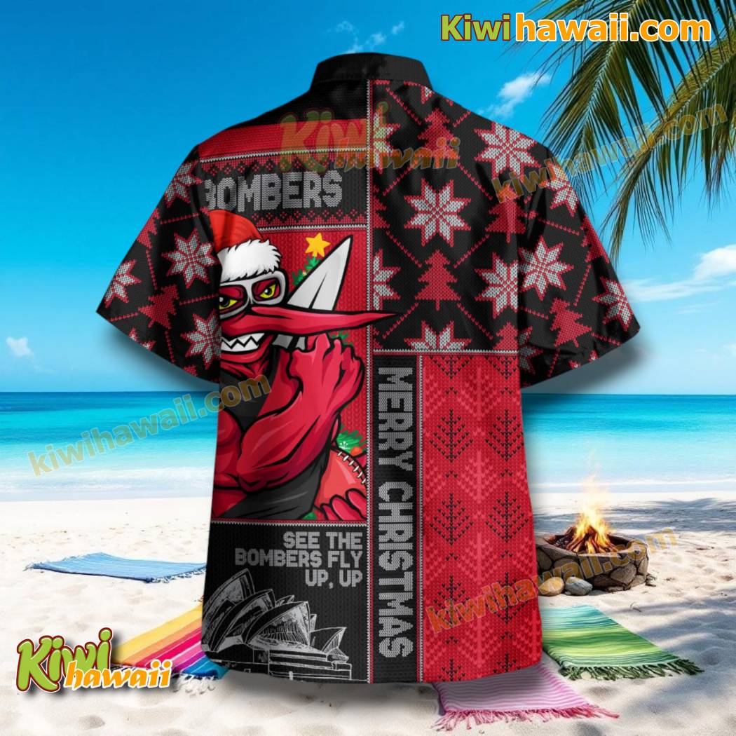 Keywords: Essendon Football Club, Essendon Bombers, AFL, Australian Rules Football, Merry Christmas, Christmas Hawaiian Shirt, Beach Shirt, Summer Fashion, Festive Print, Sportswear, Team Apparel, Fan Gear, Unique Design, KiwiHawaii, Summer Short Sleeve, Sun Beach Party, Casual Button-Down Shirt