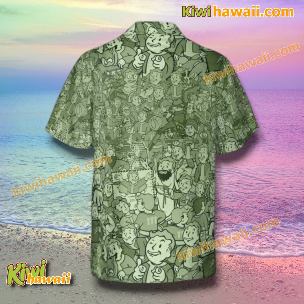 Keywords: Fallout, Hawaiian Shirt, Gaming Shirt, Doodle Art, Beach Shirt, Summer Shirt, Casual Shirt, Button-Down Shirt, Polyester Shirt, Sun Beach Party, Video Game, Post-Apocalyptic