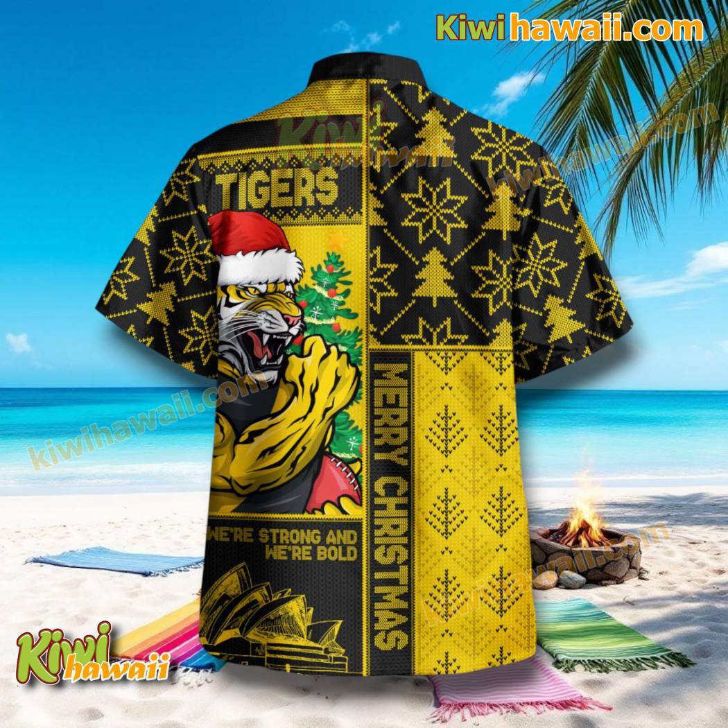 Keywords: Richmond Football Club, Richmond Tigers, AFL, Australian Rules Football, Merry Christmas, Hawaiian Shirt, Summer Shirt, Beach Shirt, Sun Beach Party, Polyester Shirt, Casual Button-Down, Short Sleeve Shirt, Breathable Fabric, Regular Fit, AFL Merchandise, KiwiHawaii